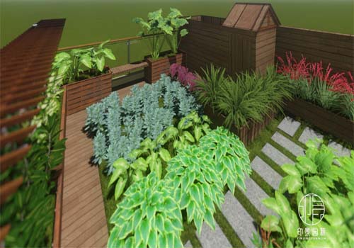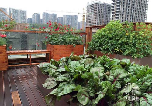 项目介绍;该项目为家庭花园-菜园样板间打造,采用现代风格屋顶花园设计风格