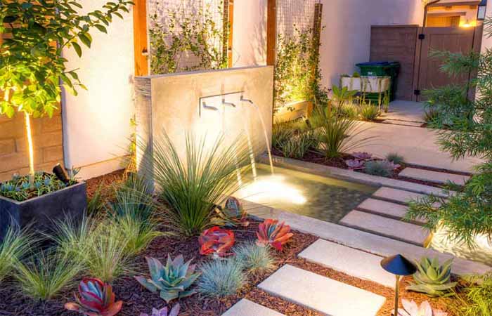 项目介绍:这是一个带有点欧式味道的现代风格花园,植物配置很有特色,小乔木配上小灌木,再加上特色多肉地被植物,营造出高低不同、色彩不同、叶茎不同等丰富的层次感。水景周边的丰富灯光系统,使得夜晚的别墅庭院景观更加多姿多彩。服务于现代精致的生活方式。